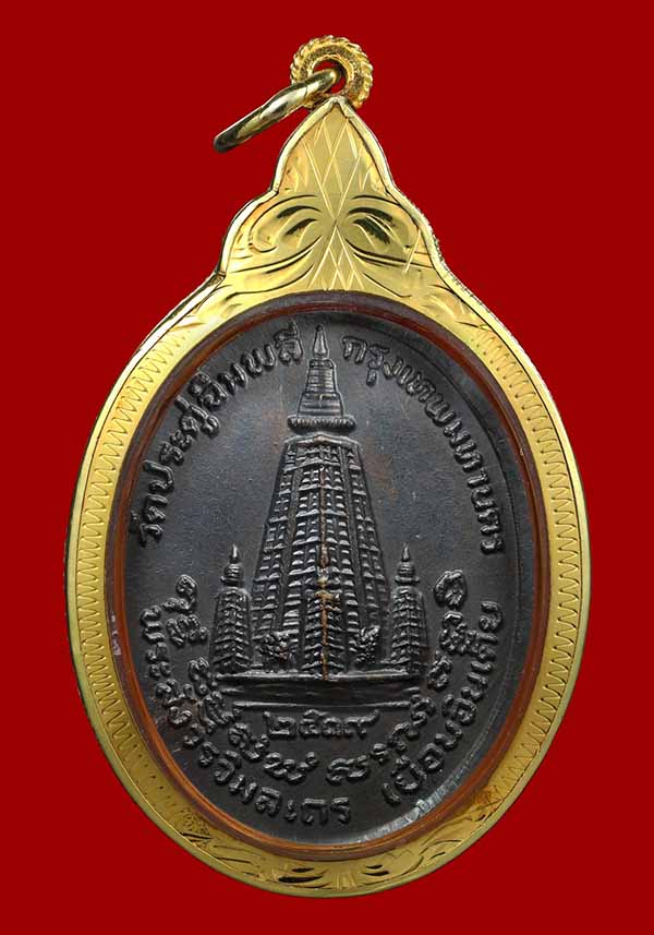 เหรียญลป.โต๊ะ วัดประดู่ฉิมพลี รุ่นเยือนอินเดีย (นิยม ม ขีด) เนื้อทองแดง ปี2519 เลี่ยมทอง / 4