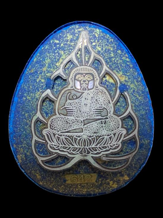 เนื้อจ้าวน้ำเงิน ตะกรุดเงิน 2 ดอก หลังสังกัจจายน์เงินใบโพธิ์ no.642 ขนาด 3.2 cm.