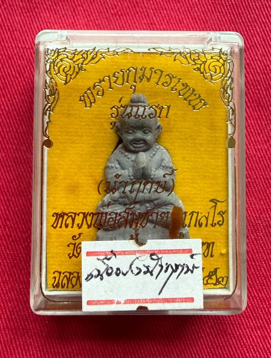 วัดใจไปเลย กุมารเทพ หลวงพ่อสมชาย วัดหนองน้อย จ.ชัยนาท ปี 2552 เนื้อผงนำฤกษ์ ฝังตะกรุด หมายเลข 429 |
