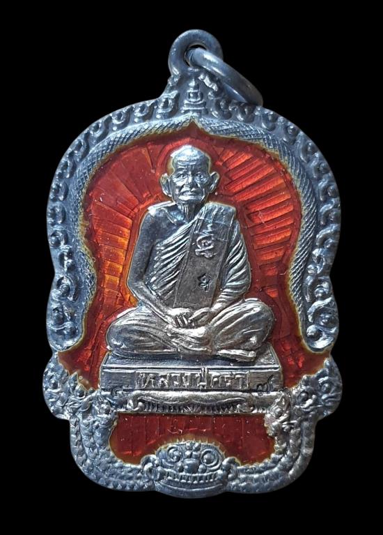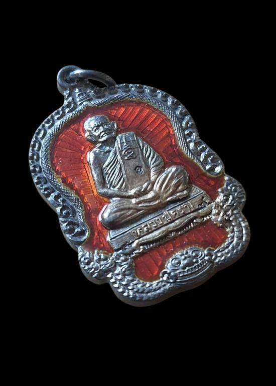 เหรียญหลวงปู่คร่ำ เนื้อเงินลงยาสีแดง กล่องเดิม ปี2537(น้ำหนักเหรียญ 11.1กรัม)...