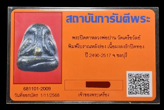 เคาะเดียวต่ำกว่าทุน...ปิดตาหลวงพ่อปาน วัดเครือวัลย์ ชลบุรี พิมพ์โบราณหลังลิ่ม (เจอน้อย) เนื้อผงลงรักปิดทองเดิม ยุคต้น ปี 2490-2517 พระสวยครับ พร้อมบัตรรับรองจากทางเว็บ |
