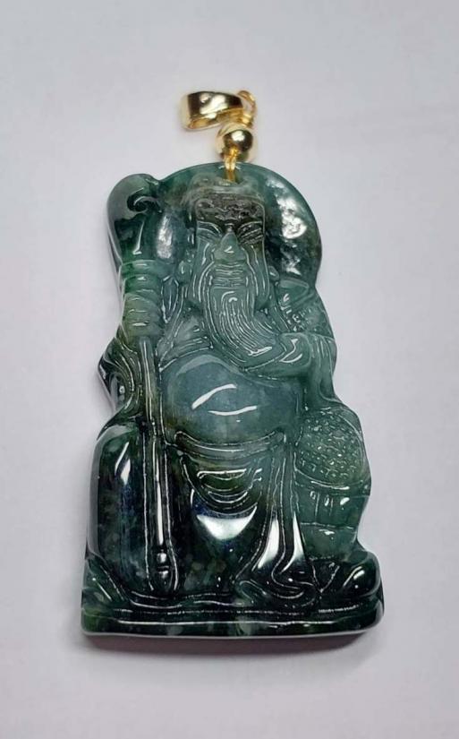 จี้หยกเทพเจ้ากวนอู หยกพม่า เนื้อโอเชียนบลูทูโทน ขนาดสูง 2 นิ้ว |