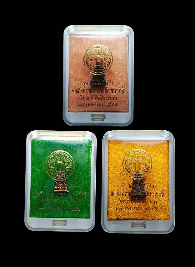 พระเครื่องรูปหล่อวัดระฆัง จำนวน 3 องค์ พระสมเด็จโต วัดระฆัง รุ่น 214 ปี ชาตกาล เนื้อนวะโลหะรมดำ, เนื้อนวะโลหะผิวเดิม, เนื้อนวะโลหะชัดผิว พิธีใหญ่ พร้อมกล่อง