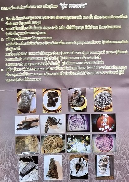 ด้าน นายปิยะ วิริยะปิยะนันท์ หรือ เฮียตี๋ ประธานชมรมพระบูชาสยามโกสินทร์ กล่าวว่าการเททองหล่อเหรียญและสร้างล็อกเก็ตเซียนแปะ ถือว่ามีพุทธคุณสุดยอดมวลสารหลากหลาย รวมทั้งแผ่นจารอักขระเลขยันต์ ของเกจิอาจารย์ 8 รูป คือ หลวงปู่เฮง หลวงพ่อรวย หลวงพ่อเงิน หลวงพ่อทอง หลวงพ่อฟู หลวงพ่อพูน หลวงพ่อลาภผลพูนทวี และหลวงพ่อเศรษฐีเรือทอง นอกจากนี้ สุดยอดมวลสาร อาทิ ตะกรุดหลวงปู่ทิม วัดละหารไร่ สุดยอดเหล็กเปียกที่หายาก มูลค่านับล้านบาท ทองล้นเงินล้น จากวัดพระธาตุดอยสะเก็ด จ.เชียงใหม่ รวมทั้งผงพุทธคุณที่มีมวลสารทั้ง 3,088 ชนิด ที่ผ่านพิธีปลุกเสกมาแล้วมากกว่า 600 ครั้ง จะบรรจุไว้ด้านหลังล็อกเกตเซียนแปะโรงสี ที่จัดสร้างครั้งนี้ ซึ่งวัตถุมงคลที่จัดสร้างในครั้งนี้ มีจำนวนไม่มากนัก.......พระแท้ พิธีใหญ่ เล่นหากันมาตรฐานสากลสามารถออกบัตรรับรองได้ " |