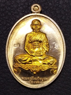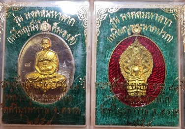 เหรียญหลวงปู่บัว รุ่นมงคลมหาลาภ เหรียญนั่่งโต๊ะเต็มองค์เนื้ออัลปาก้า องค์ทองทิพย์ + เหรียญพระนากปรกเนื้อทองระฆังลงยาแดง รวม 2 เหรียญ ปี 2559