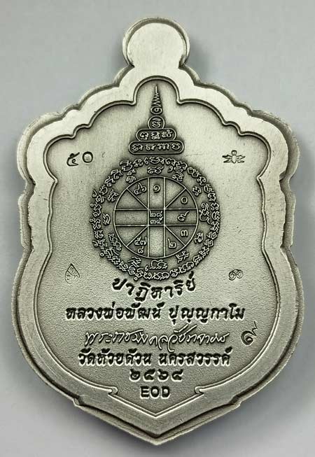 เหรียญ "ปาฏิหาริย์ EOD"(พิมพ์เสมาครึ่งองค์) หลวงพ่อพัฒน์ วัดห้วยด้วน เนื้อเงินรมซาตินไม่ตัดปีก เบอร์ 50 พร้อมกล่องครับ (เหรียญหนัก 21.38 กรัม) |