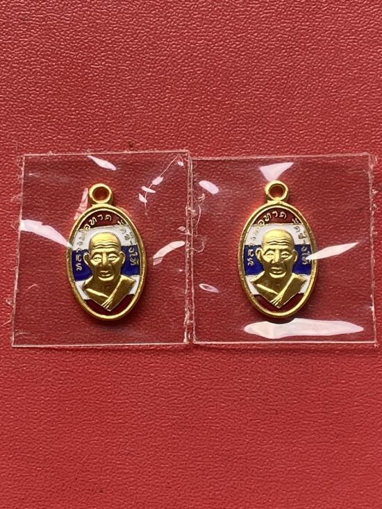 เคาะเดียวแดง เม็ดแตง 2องค์หลวงปู่ทวด รุ่น102ปีอาจารย์ทิม เนื้อชุบทองลงยาสีธงชาติ |