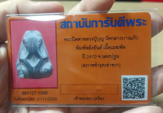 ปิดตาหลวงปู่บุญวัดกลางบางแก้วหลังยันต์สี่นิยมสุดพร้อมบัตรรับรองค่ะ