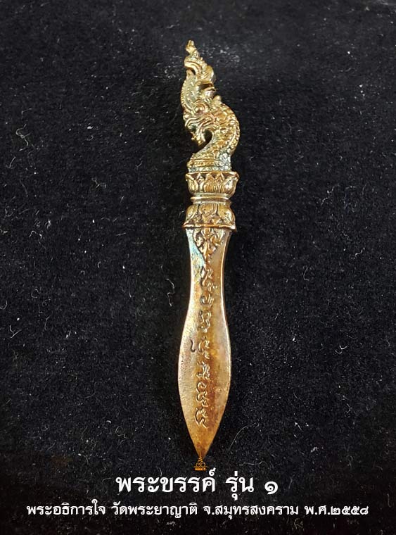 พระขรรค์รุ่น ๑ พระอธิการใจ ฐิตาจาโร วัดพระยาญาติ จ.สมุทรสงคราม ปี 2558 เนื้อสัมฤทธิ์ |
