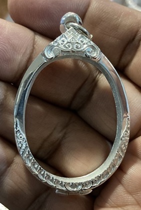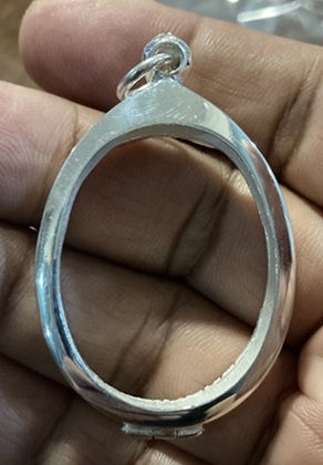 ตลับเงินปัดเงา ทรงรูปไข่ ขนาดขอบใน (กxสxหนา) (2.7 x 3.6 x0.6) Cm.หรือขนาดเหรียญใกล้เคียง