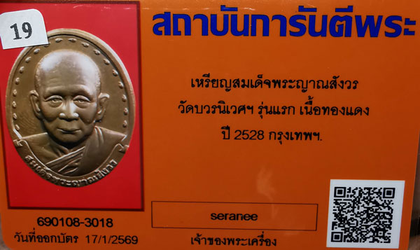 เหรียญสมเด็จญาณสังวร วัดบวรนิเวศวิหาร รุ่นแรก เนื้อทองแดง ปี2528 จ.กรุงเทพฯ + บัตรG-pra สภาพเดิมค่ะ |