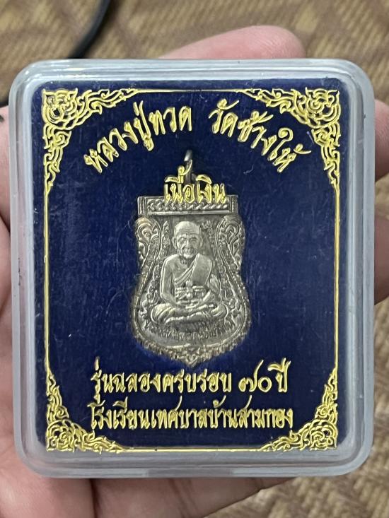 เหรียญเนื้อเงิน หลวงปู่ทวด วัดช้างให้ รุ่นฉลองครบรอบ 70ปี โรงเรียนเทศบาลบ้านสามกอง สวยพร้อมกล่อง