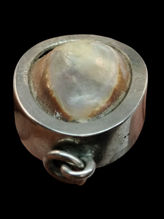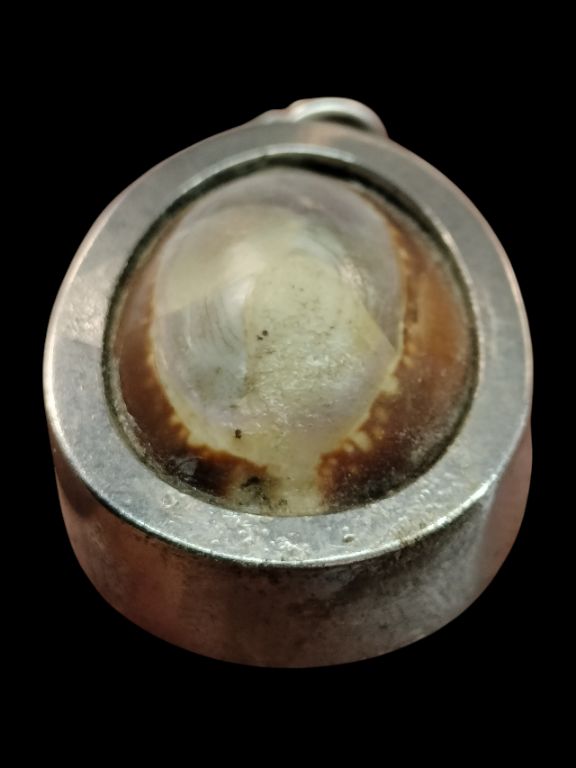 เบี้ยแก้ เลี่ยมสแตนเลส หลวงพ่อไพร วัดบางแคกลาง สมุทรสงคราม สภาพใช้ตามรูป