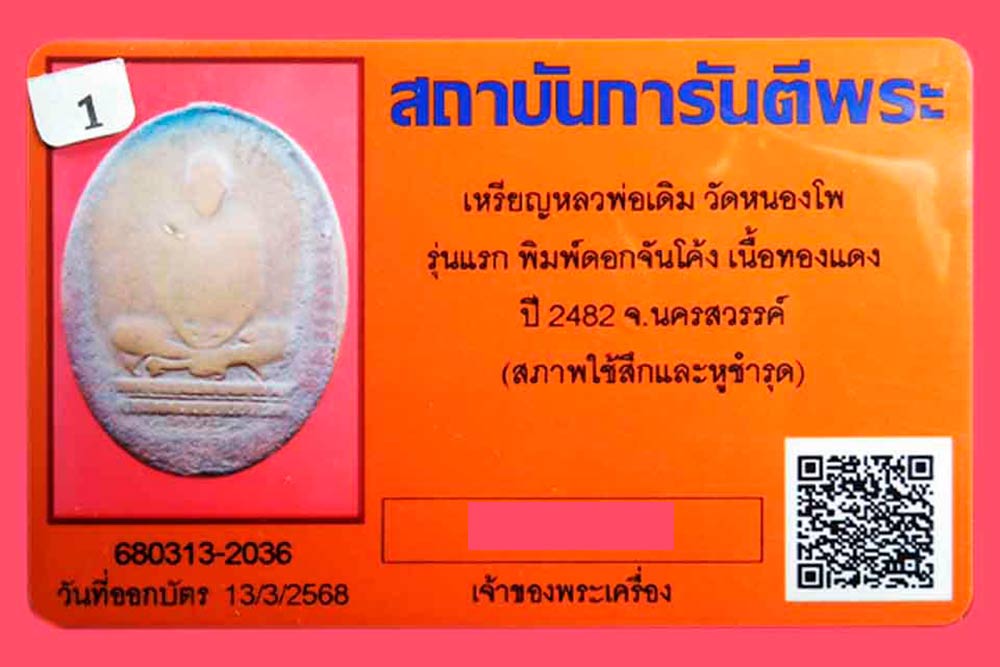 เหรียญหลวงพ่อเดิม วัดหนองโพ รุ่นแรก พิมพ์ดอกจันโค้ง เนื้อทองแดง ปี 2482 จ.นครสวรรค์ สวยๆ หลักแสน องค์นี้สภาพใช้และหูชำรุด เคาะเดียวแดง 15,000 บาท (ตัวจริงหายากครับ มาพร้อมบัตรรับรองจีพระ)