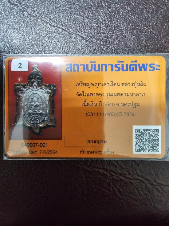 เหรียญพญาเต่าเรือน หลวงปู่หลิว วัดไร่แตงทอง รุ่นเมตามหาภาล เนื้อเงิน ปี2540 |