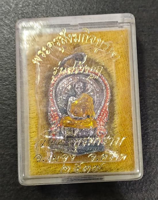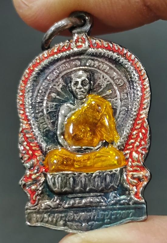 เหรียญนั่งพานเล็ก เนื้อเงิน ลงยา หลวงปู่บัว ถามโก ปี 2539