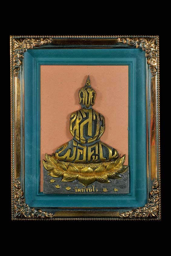 กรอบรูปโลหะตั้งโต๊ะบูชา พิมพ์พระพุทธนั่งบัว ตัวหนังสือศิษย์หลวงพ่อคูณ ( ขนาดกรอบ 5 x 6.5 นิ้ว ) แบบงานนูนต่ำเนื้อซิลิก้า กรอบเนื้อโลหะ พ.ศ.2536 ( พิมพ์หาชมยาก , มีกล่องกระดาษเดิม )