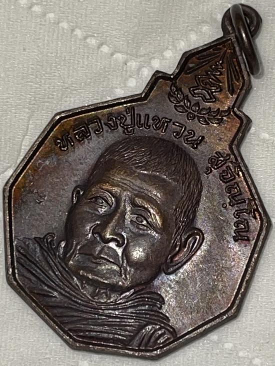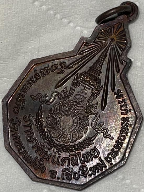 เหรียญเก้าเหลี่ยม เนื้อทองแดง รุ่นรักษาดินแดนไทย หลวงปู่แหวน สุจิณฺโณ วัดดอยแม่ปั๋ง อ.พร้าว จ.เชียงใหม่ ปี2520