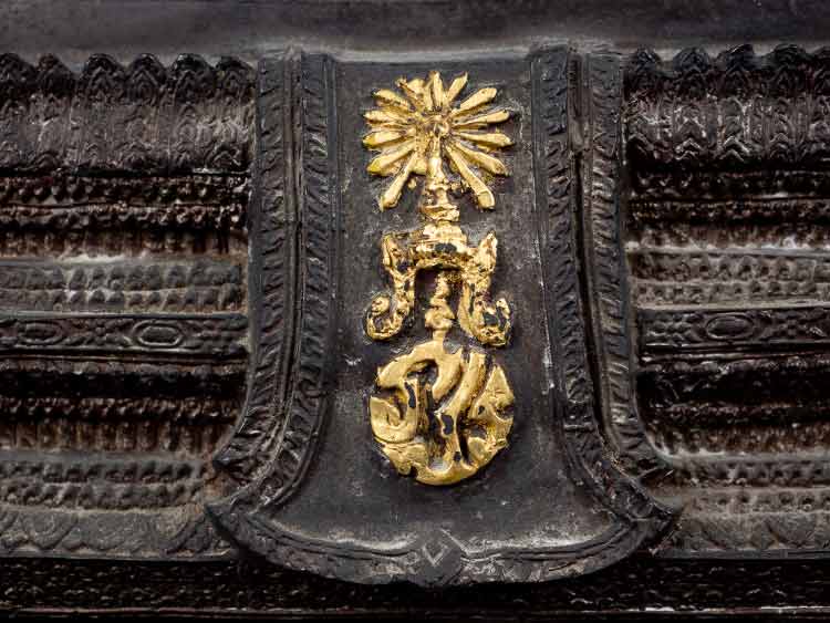 ที่ฐานผ้าทิพย์มีพระปรมาภิไธยย่อ ภปร. และพระมหาพิชัยมงกุฏ