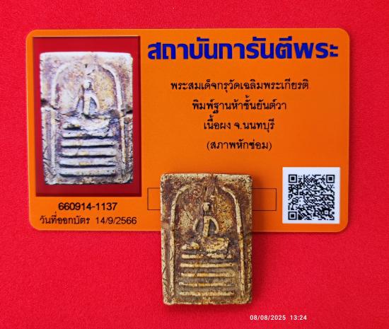 เคาะเดียว ไม่ต้อง วัดใจ พระสมเด็จกรุวัดเฉลิมพระเกียรติพร้อมบัตร