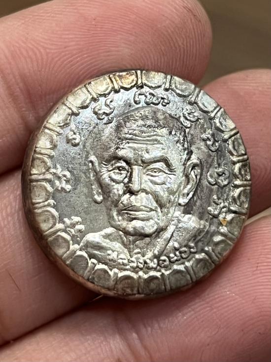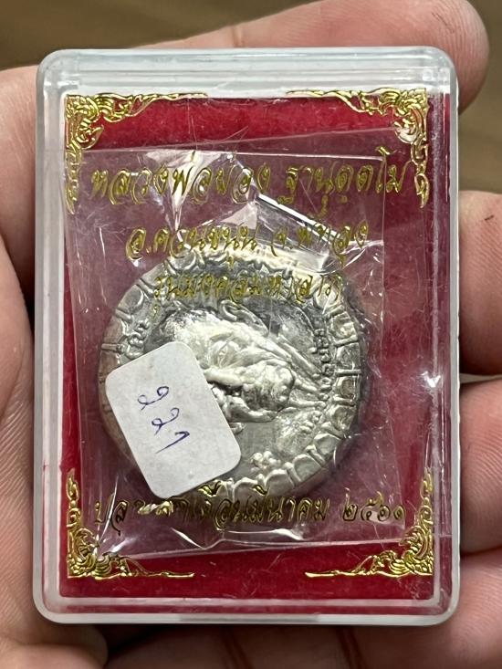 เหรียญตลับยาหม่อง เนื้อเงิน ด้านหลังติดหนังเสือ พ่อท่สนผ่อง วัดแจ้ง พัทลุง เลข221 สวยเดิม |