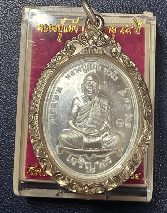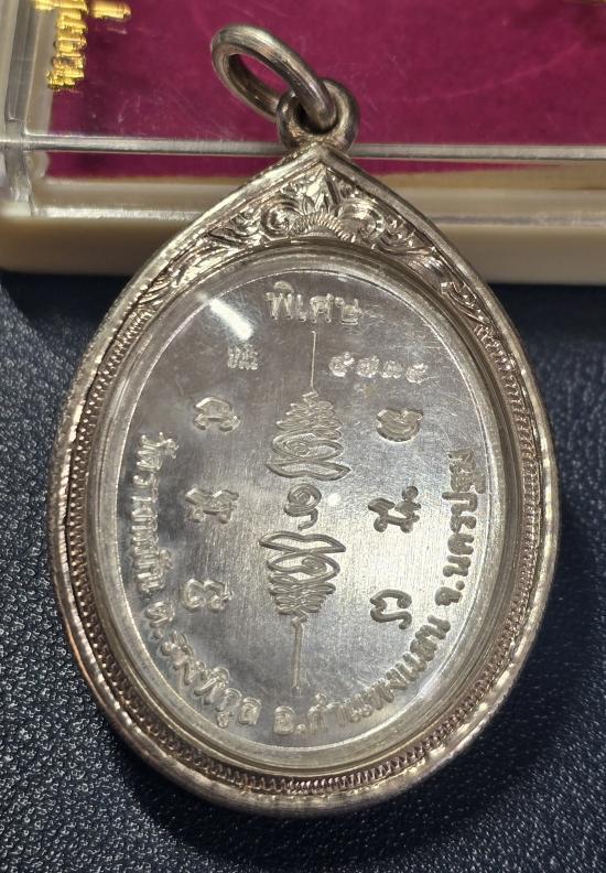เหรียญเจริญพรล่าง หลวงปู่แผ้ว วัดรางหมัน เนื้อเงิน no.4739 เลี่ยมกรอบเงินแท้สวยๆหนาๆ พร้อมกล่อง