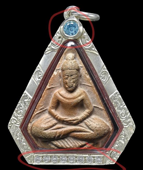 ปล.เจ้าของเก่าเลี่ยมมาอย่างดี แต่ไม่รู้ว่าอัญมณีที่ติดอยู่ด้านบนกับด้านล่าง คืออะไรนะครับ |