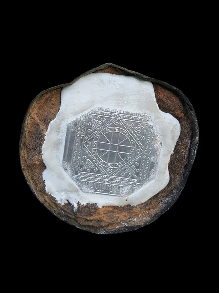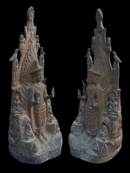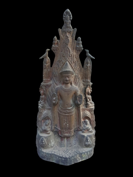 พระบูชา ปางปาฏิหาริย์ ใต้ฐานดินไทย ปิดทับด้วยแผ่นมหายันต์โภคทรัพย์ ครบเครื่อง ผิวหิ้งๆ บ้านๆ