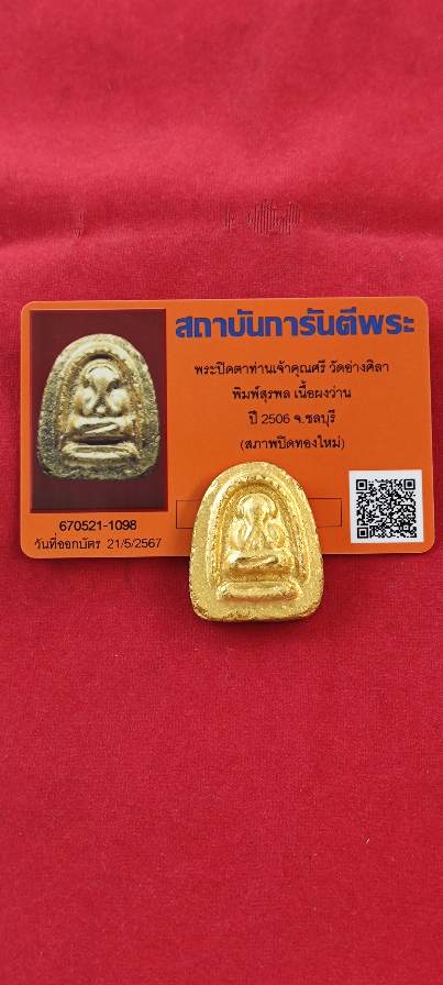 พระปิดตา ท่านเจ้าคุณศรี วัดอ่างศิลา ชลบุรี พิมพ์สุรพล เนื้อผงว่าน ปี2506 สภาพปิดทองใหม่ มีบัตรจีพระครับ