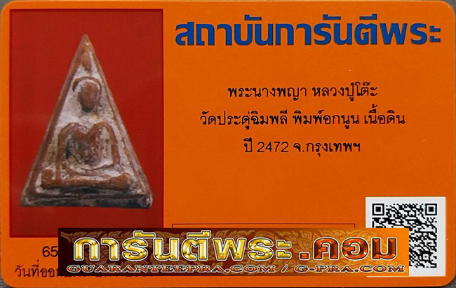 ชื่อพระเครื่อง พระนางพญา หลวงปู่โต๊ะ วัดประดู่ฉิมพลี พิมพ์อกนูน เนื้อดิน ปี2472