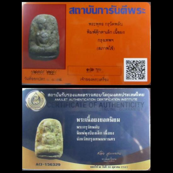 พระพุทธ กรุวัดพลับ พิมพ์พุงป่องเล็ก เนื้อผง จ.กรุงเทพ พร้อมบัตรรับรอง 2 สถาบัน สวยแท้ ดูง่าย