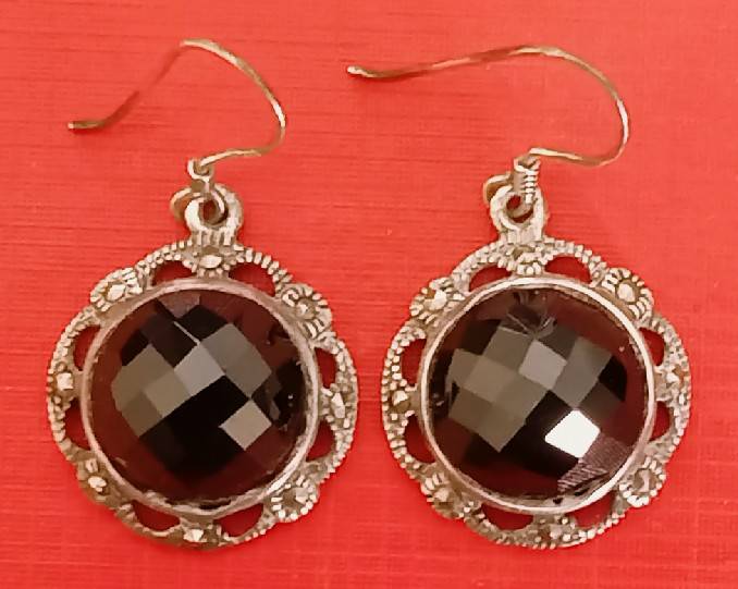 ต่างหูนิลเมืองกาญจน์แท้ เงินแท้ 92.5% ฝังแมคกาไซต์ เจียรหลังเต่าตัดเหลี่ยม งานเก่ามากทำความสะอาดแล้ว งานแข็งแรงหนาหรูหรา สภาพสวยตามรูป ส่งฟรีทั่วไทย รับประกันตามกฎครับ