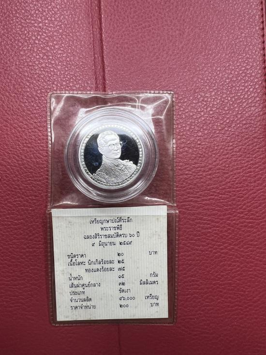 เหรียญ 20บาท ที่ระลึก รัชกาลที่9 ฉลองสิริราชสมบัติครบ60ปี เหรียญขัดเงา รายละเอียดตามใบเซอร์ |