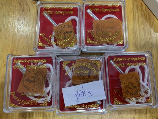 เนื้อเงินกำลังขึ้น ทีเดียว 5 กล่อง ตะกรุดปั้มจีวรหัวใจเศรษฐี รุ่นแรก 77 หลวงปู่ศิลา ยุคต้น จ.กาฬสินธุ์ เนื้อเงิน ได้ครบทั้ง 3 รายการ ตะกรุดเงิน ,จีวร ,สายสิญจน์ ตอกโค๊ด สวยมาก กล่องเดิมครับ 3