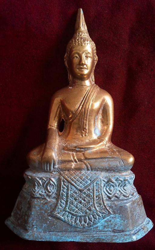 พระบูชา ปางมารวิชัย ขนาดหน้าตักประมาณ 3 นิ้ว 3 หุน ประทับนั่งบนผ้าทิพย์ ฐานบัวคว่ำบัวหงาย เนื้อทองเหลืองสีสุก ฐานสีออกเขียวตัดกับผิวองค์พระงามดี ใต้ฐานยังเห็นเศษปูนอุดยู่ สภาพสวยตามรูป ส่งฟรีทั่วไทย รับประกันตามกฎครับ