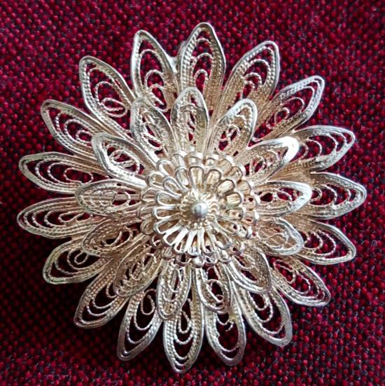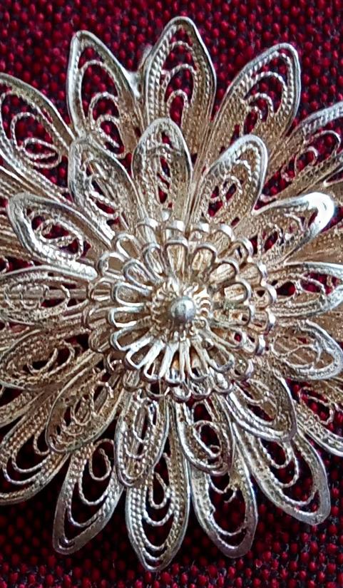 เข็มกลัดติดเสื้อและจี้ในตัว เงินแท้ ทรงดอกรักเร่ ขนาดประมาณ 1 นิ้ว 1 หุน หนักประมาณ 3.5 กรัม เป็นทั้งเข็มกลัดติดเสื้อ และจี้ห้อยคอ ด้านหลังตอก SILVER 925 ชัดเจน งานฝีมือถักขดเส้นเงินสุดประณีต งานโบราณงดงาม สภาพสวยตามรูป ส่งฟรีทั่วไทย รับประกันตามกฎครับ
