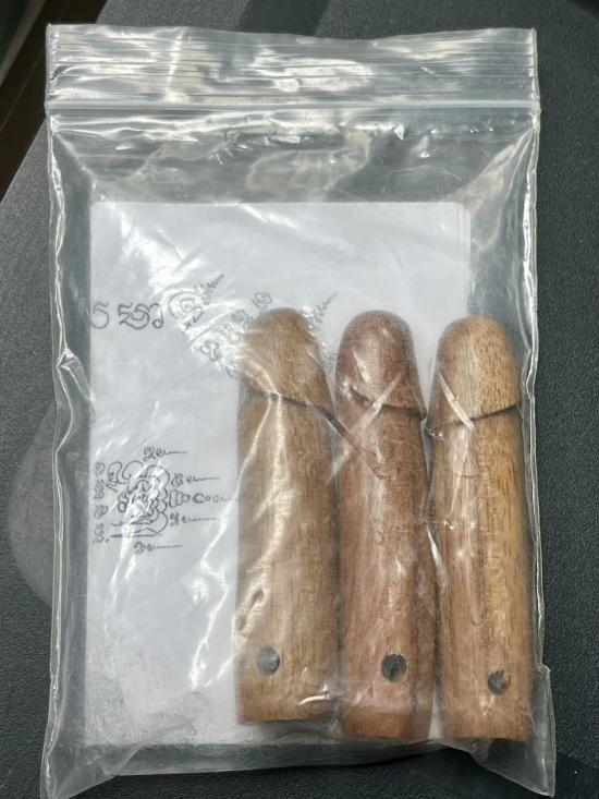 ปลัดขิกไม้พยุงแกะอุดกริ่ง ค้าขายร่ำรวยครับ มีจารรอบอัน รุ่นไตรมาศ44 หลวงพ่อเปิ่น วัดบางพระ พ.ศ.2544 |