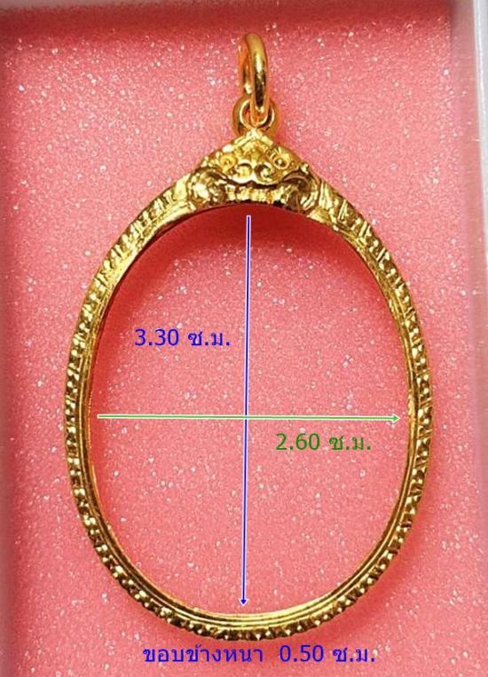 รายละเอียด กรอบทองใหม่ ไม่เคยใช้ สำหรับใส่เหรียญเจริญพร ลพ.คูณ หรือเหรียญคณาจารย์ทั่วไป น้ำหนัก 3.84 กรัม ขนาด กว้าง 2.6 x 3.3 ซ.ม. ขอบหนา 0.50 ซ.ม.