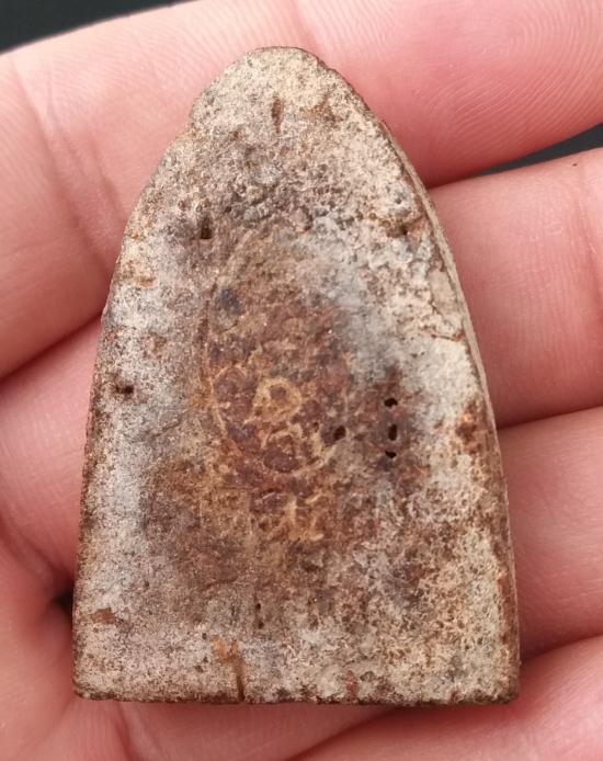 บริเวณนี้มีตำหนิเนื้อแหว่งหายหลุดไปน่าจะถูกแมลงกินเนื้อพระไปตามภาพครับ