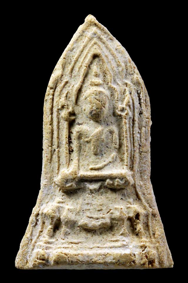 พระหลวงพ่อเต็ง (อาจารย์เต็ง) วัดดอนยอ จ.นครปฐม เนื้อผงพุทธคุณ พิมพ์โคนสมอ หลังขุนแผนออกศึก ปีพ.ศ.2492 สวยเดิม เดิม