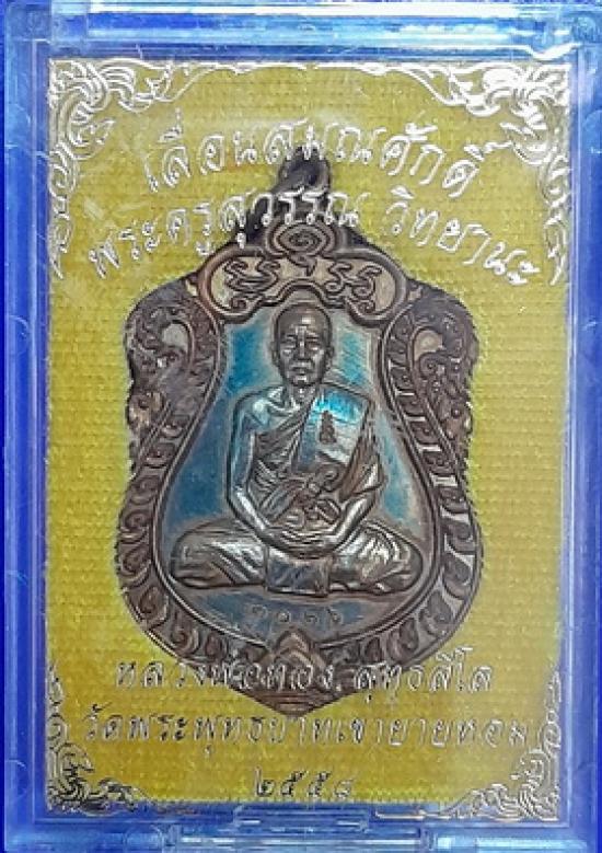 เหรียญเลื่อนสมณศักดิ์ หลวงพ่อทอง วัดพระพุทธบาทเขายายหอม จ.ชัยภูมิ เนื้อทองแดงรมมันปู |