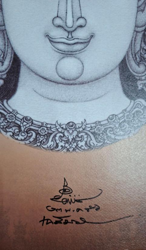 กราบขออนุญาตท่านอาจารย์ เพื่อนำเสนอภาพพิมพ์กระดาษ (หนังไก่) พระโพธิสัตว์ (แบบไม่มีขอบ)ขนาด 48.x70 ซม. ลายเซ็นสด! "ฉ" อุณาโลมหนึ่งหยัก! ลงวันที่ ๒๓ พ.ค. ๕๖