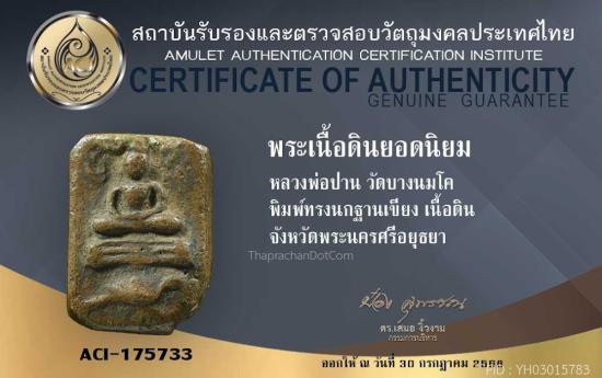 พระหลวงพ่อปาน วัดบางนมโค พิมพ์ทรงนกฐานเขียง+บัตรรับรอง2สถาบัน