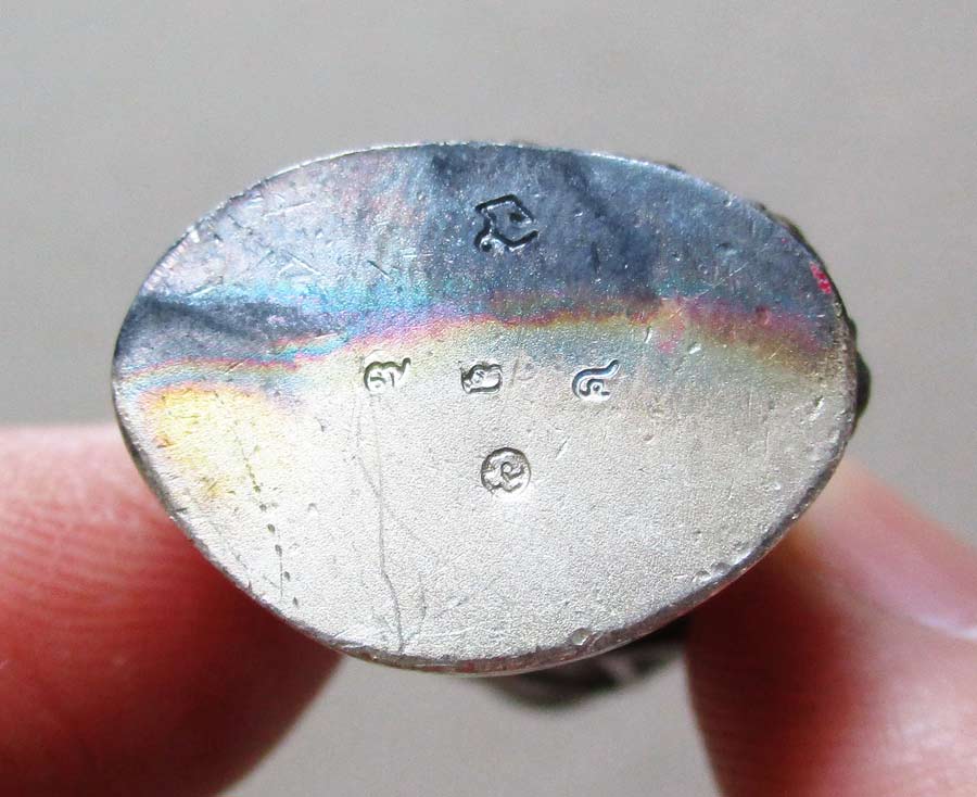 ใต้ฐานพระกริ่งปิดด้วยแผ่นเงิน