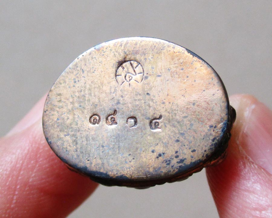 ภาพใต้ฐานพระกริ่ง ตอกโค๊ต ยันต์ ตอกเลข 1404