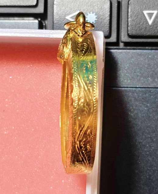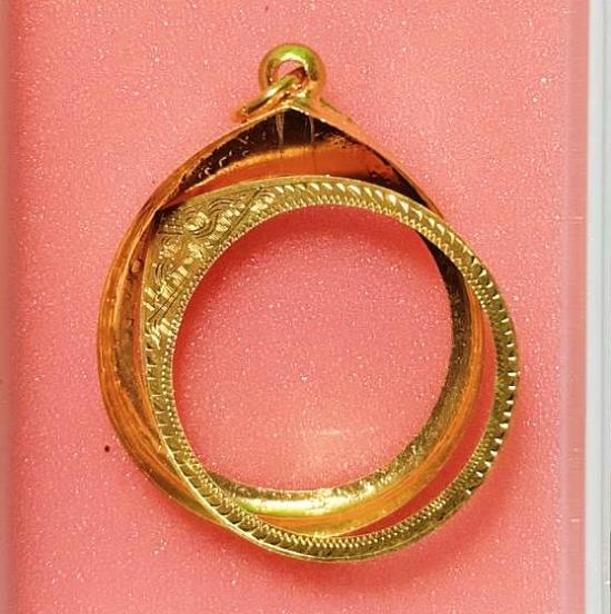กรอบทองใหม่ ทรงกลม หน้าจอ 2.25 cm หนัก2.6กรัม สำหรับเหรียญกลมคณาจารย์ทั่วไป พร้อมบัตรจีครับ