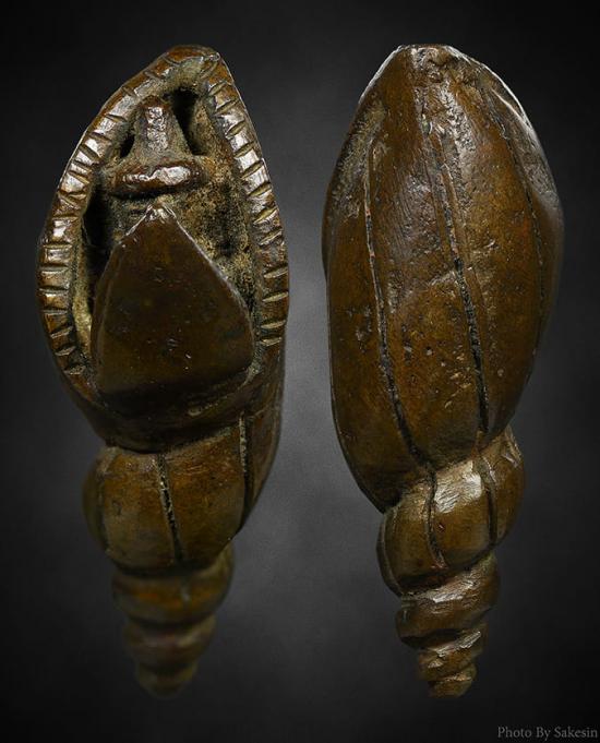 วัดใจ พระอุปคุต หอยสังข์ เนื้อสัมฤทธิ์ออกเหลืองแดงคล้ำ เก่าจัด