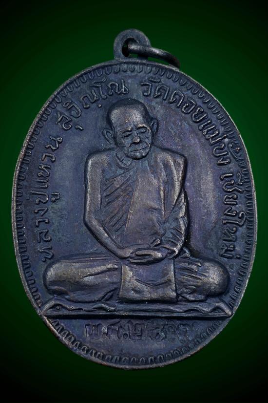 เหรียญหลวงปู่แหวน วัดดอยแม่ปั๋ง รุ่นเจดีย์ 84 พิมพ์รูปไข่ ปี 2517 เนื้อทองแดง จังหวัดเชียงใหม่