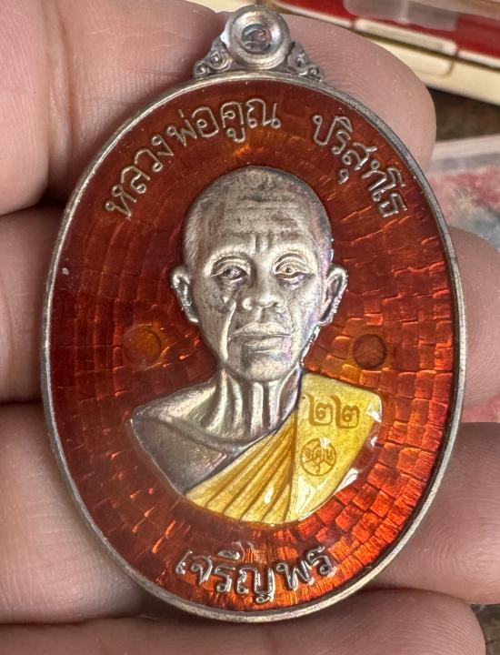 เหรียญ หลวงพ่อคูณ ปริสุทฺโธ เหรียญจัมโบ้รุ่นเจริญพรล่าง91 เนื้อเงินลงยาสีเเดง หมายเลข22 มีกล่องครับ(น้ำหนักเงินหนัก70กรัม)