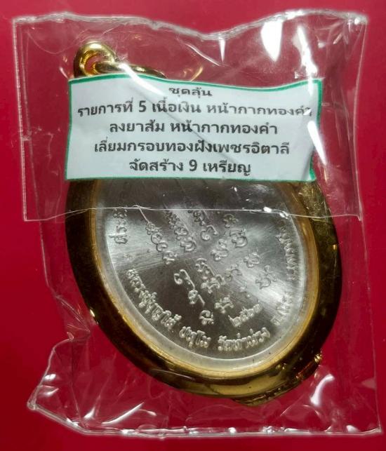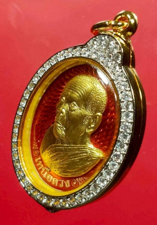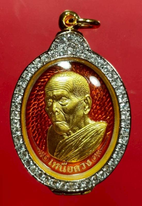 พ่อท่านบุญให้ เหรียญ เหนือดวงเนื้อเงิน หน้ากากทองคำ ลงยาส้ม สร้าง ๙ เหรียญ หมายเลข ๖ เลี่ยมกรอบทองอิตาลีฝังเพชร จากผู้สร้าง